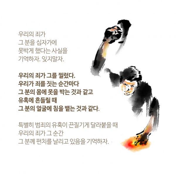 우리의 죄가 그를 찔렀다. 우리가 죄를 짓는 순간마다 그 분의 몸에 못을 박는 것과 같고