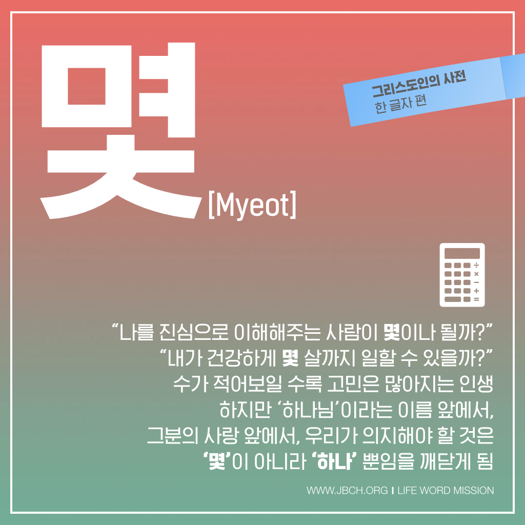 '몇'이 아니라 '하나'뿐임을 깨닫게 됨