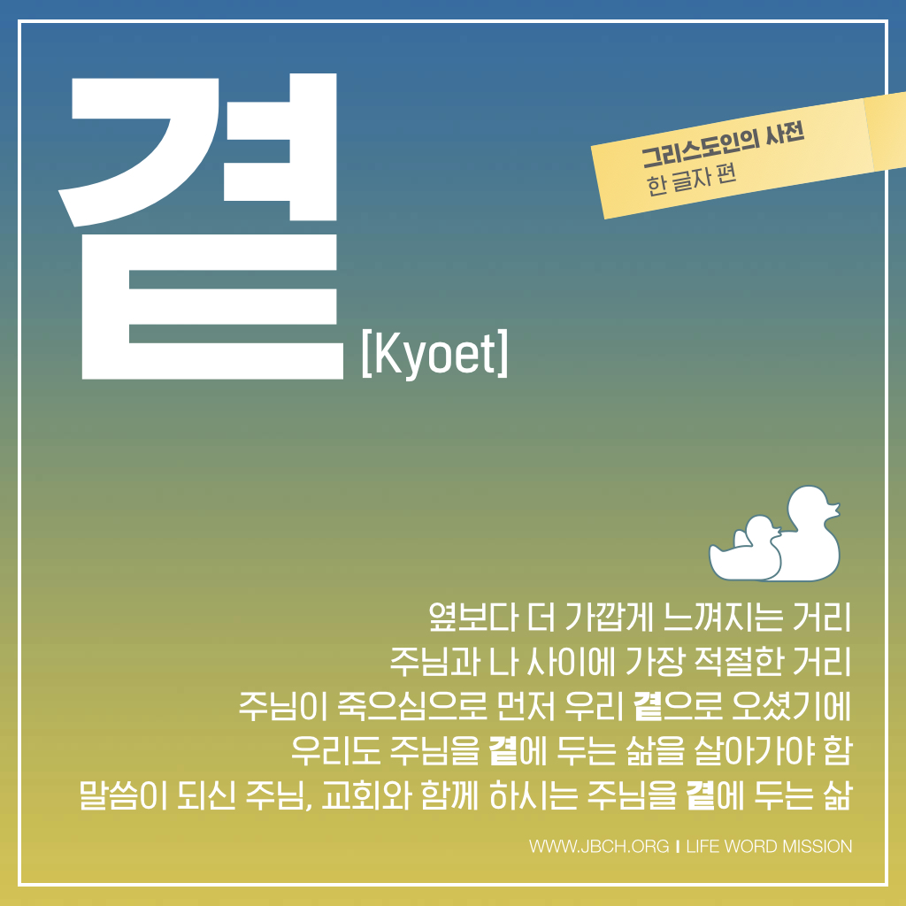 우리도 주님을 곁에 두는 삶을 살아가야 함