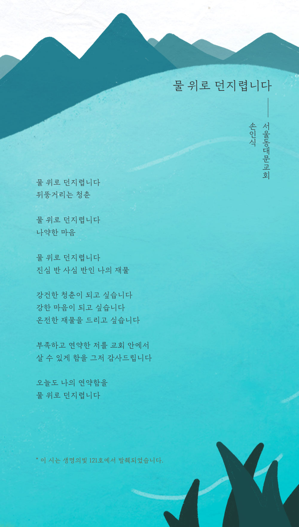 이 시는 생명의빛 121호에서 발췌되었습니다.더 많은 시를 '생명의빛' 에서 만나보세요!!