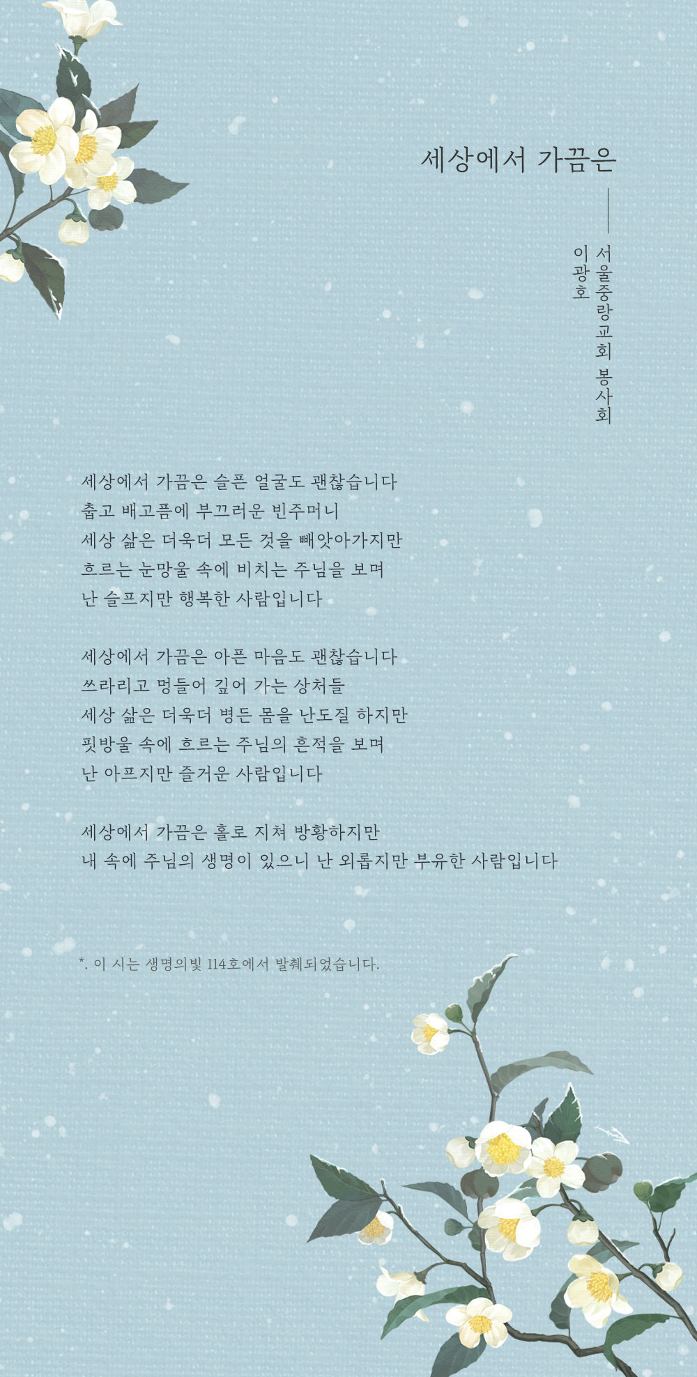 이 시는 생명의빛 114호에서 발췌되었습니다.더 많은 시를 '생명의빛' 에서 만나보세요!!