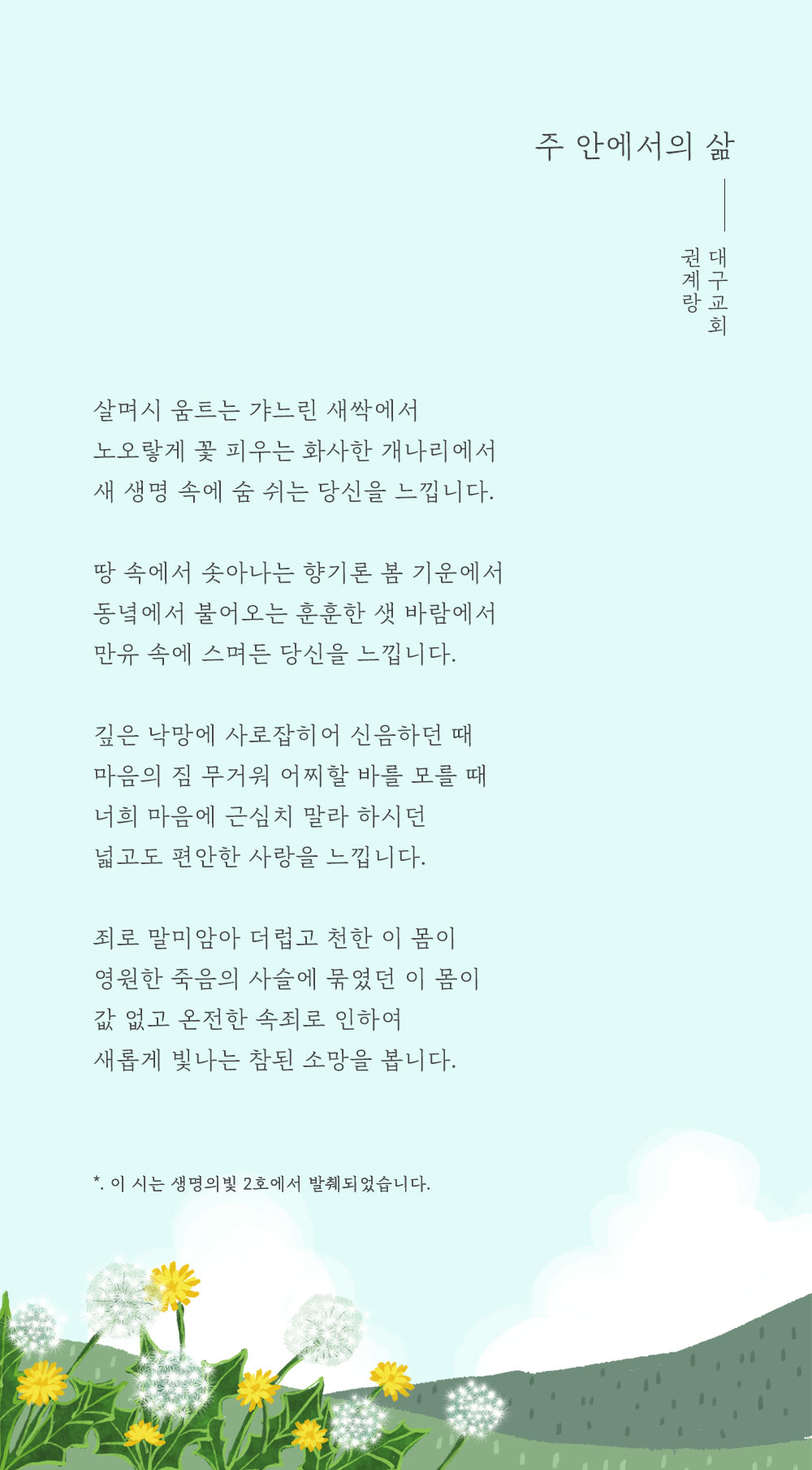 이 시는 생명의빛 2호에서 발췌되었습니다.