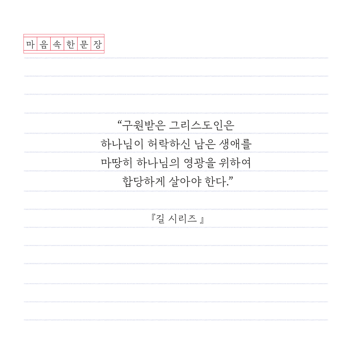 [마음속 한 문장] 83. 하나님의 영광을 위한 삶