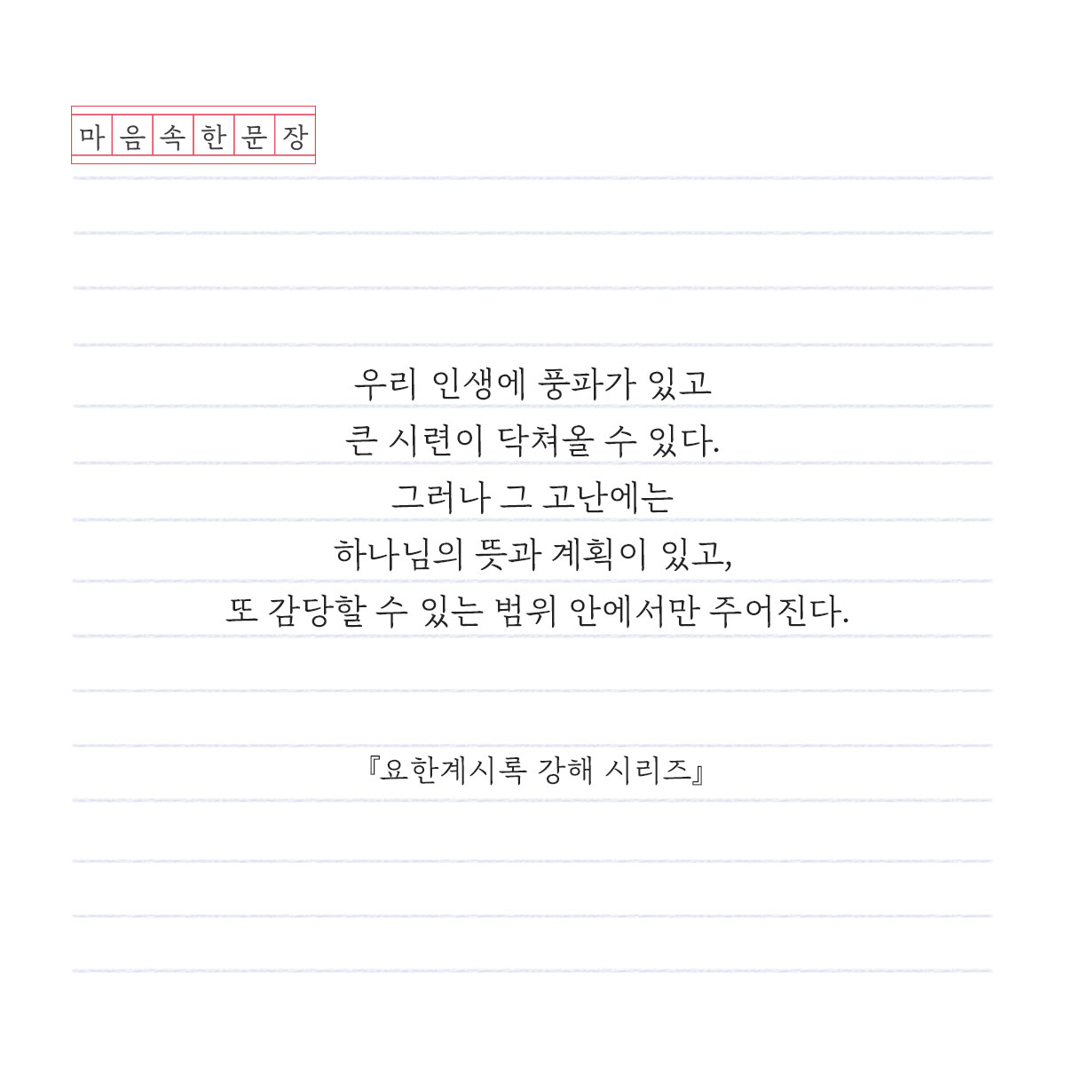 마음속 한 문장 108. 하나님의 뜻과 계획