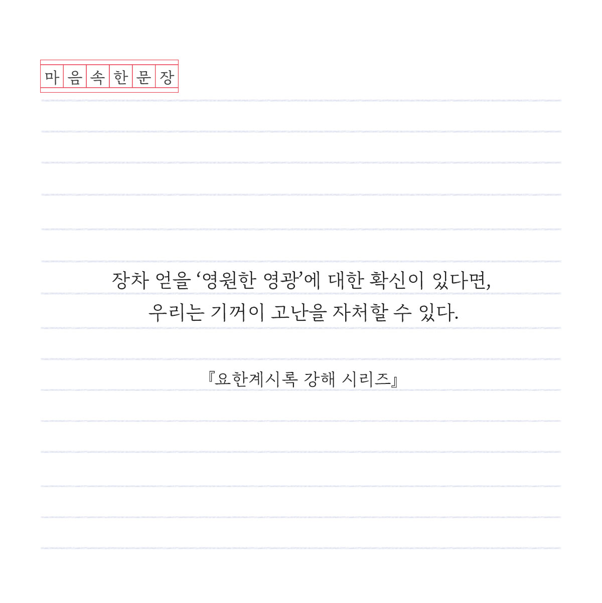 [마음속 한 문장] 109. 영원한 영광