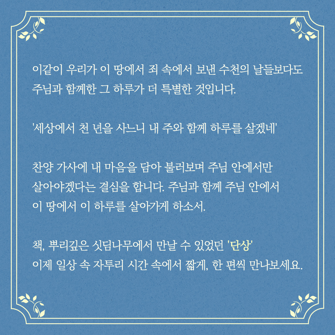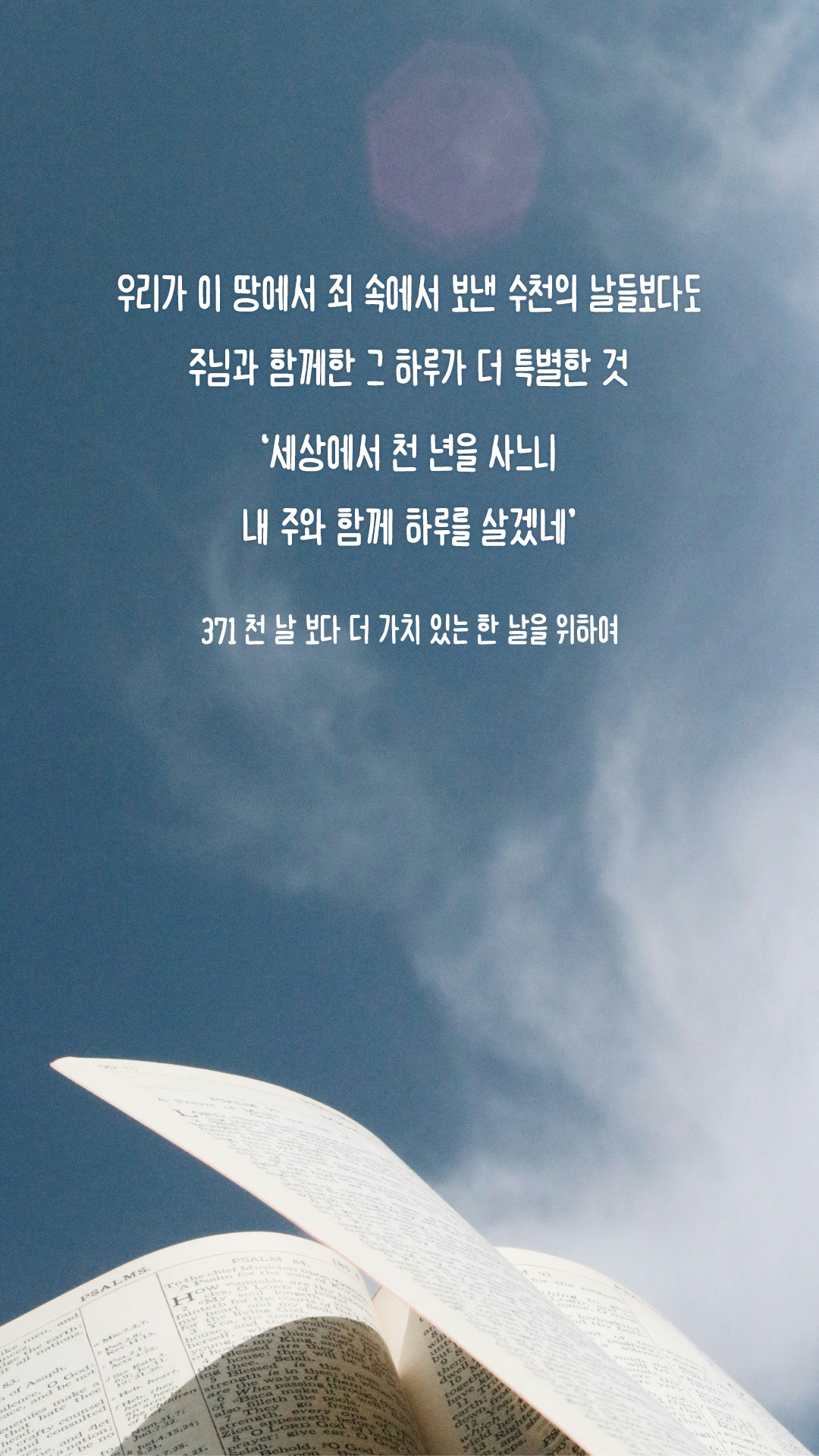 '세상에서 천 년을 사느니 내 주와 함께 하루를 살겠네'라는 찬양 가사가 있습니다.