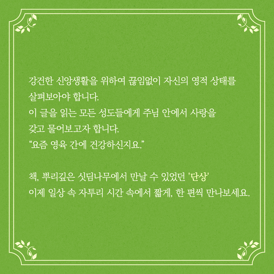 강건한 신앙생활을 위하여 끊임없이 자신의 영적 상태를 살펴보아야 합니다.