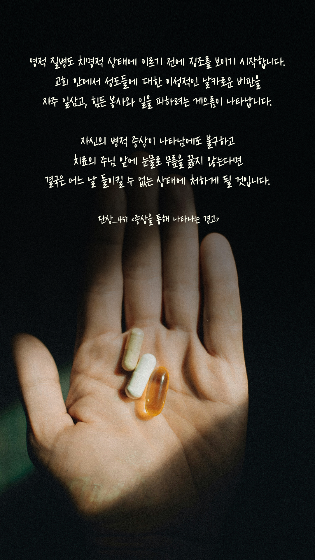 이와 같이 자신의 병적 증상이 나타남에도 불구하고 치료의 주님 앞에 눈물로 무릎을 꿇지 않는다면
