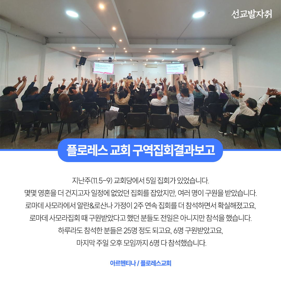 지난주(11.5-9) 교회당에서 5일 집회가 있었습니다. 몇몇 영혼을 더 건지고자 일정에 없었던 집회를 잡았지만, 여러 명이 구원을 받았습니다.