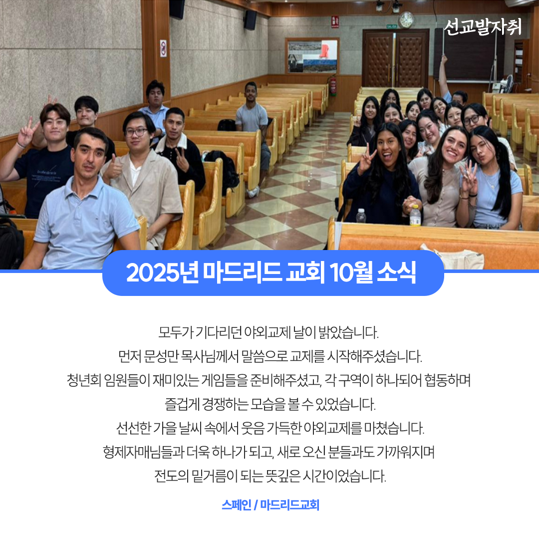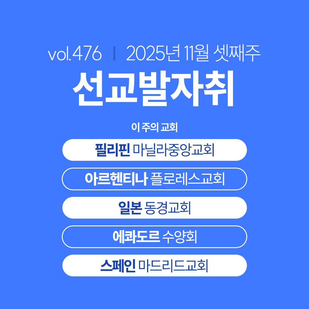 2025년 11월 17일 마닐라중앙교회/ 플로레스교회/ 에콰도르수양회/ 마드리드교회/ 동경교회