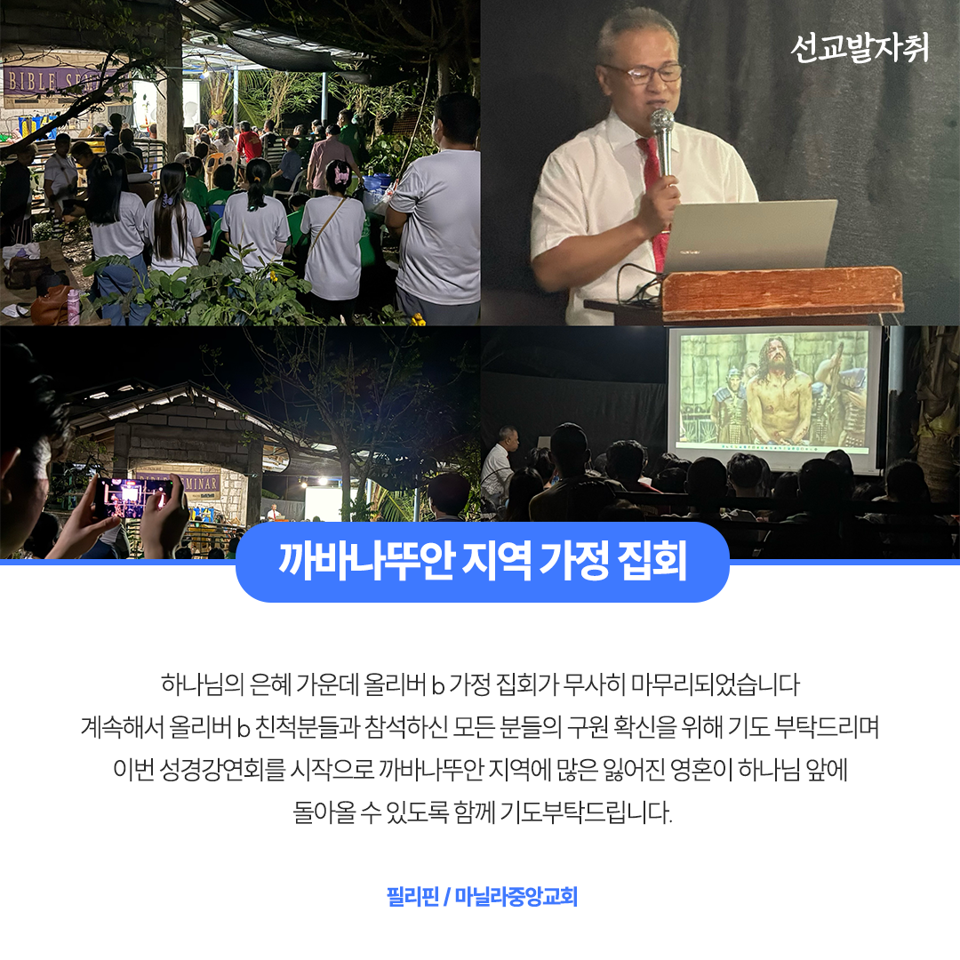 계속해서 올리버 b 친척분들과 참석하신 모든 분들의 구원 확신을 위해 기도 부탁드리며 이번 성경강연회를 시작으로 까바나뚜안 지역에 많은 잃어진 영혼이 하나님 앞에 돌아올 수 있도록 함께 기도부탁드립니다