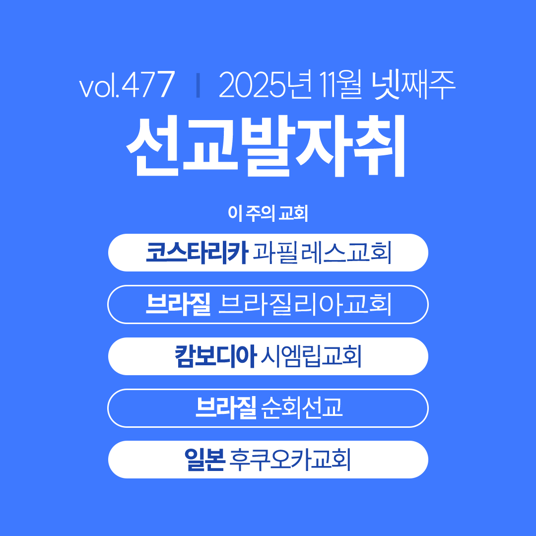 2025년 11월 24일 과필레스교회/ 브라질리아교회/ 워싱턴교회/ 시엠립교회/ 순회선교/후쿠오카