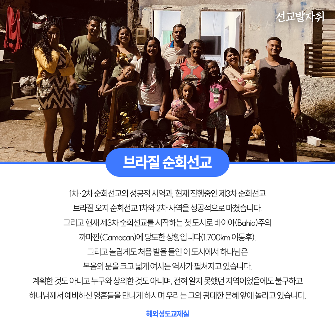 브라질 오지 순회선교 1차와 2차 사역을 성공적으로 마쳤습니다.