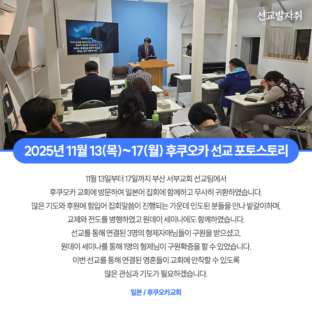 2025년 11월 13(목)~17(월) 후쿠오카 선교 포토스토리