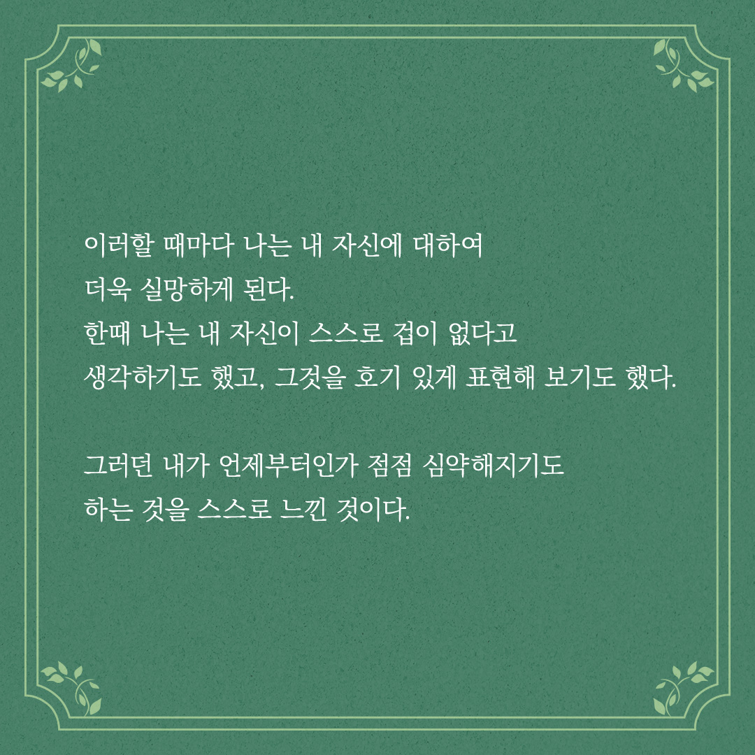이러할 때마다 나는 내 자신에 대하여 더욱 실망하게 된다.