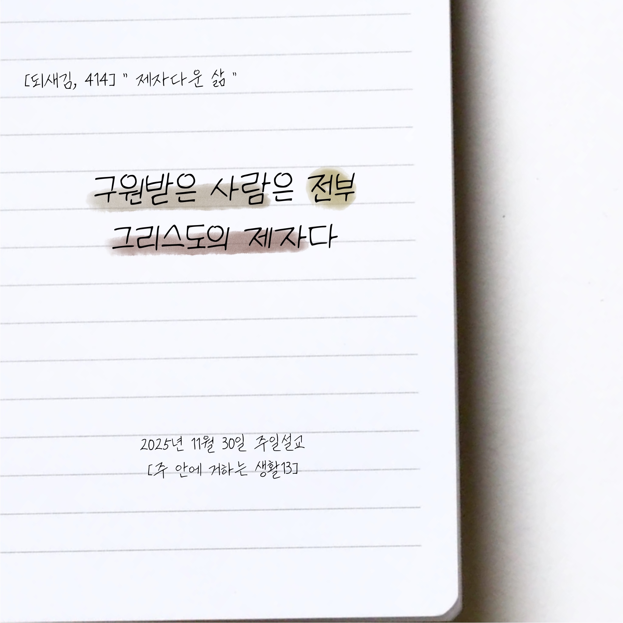 그래서 그리스도의 영이 있는 사람이 그리스도인이라고 하는 것처럼 그리스도의 제자라는 말도 여러분, 그리스도의 제자가 구원받으면 다 그리스도의 제자입니다. 마태복음 28장 19절에 보면 예수님이 승천하시기 전에 (마 28:19) ‘너희는 가서 모든 족속으로 제자를 삼아’ 구원받으면 제자입니다.’ 사도행전 2장에 보면 오순절에 구원받은 사람이 3,000명, (행 2:41) ‘이날에 제자의 수가 삼천이나 더하더라’ (행 6:7) ‘제자의 수가 더 심히 많아지고’ 제자라 그랬어요, 제자. (마 28:19) ‘너희는 가서 모든 족속으로 제자를 삼아’ 구원받으면 그리스도의 제자가 되는 거예요. 여러분, 구원받은 사람은 전부 그리스도의 제자입니다. 열두 제자만 그리스도의 제자가 아니에요.