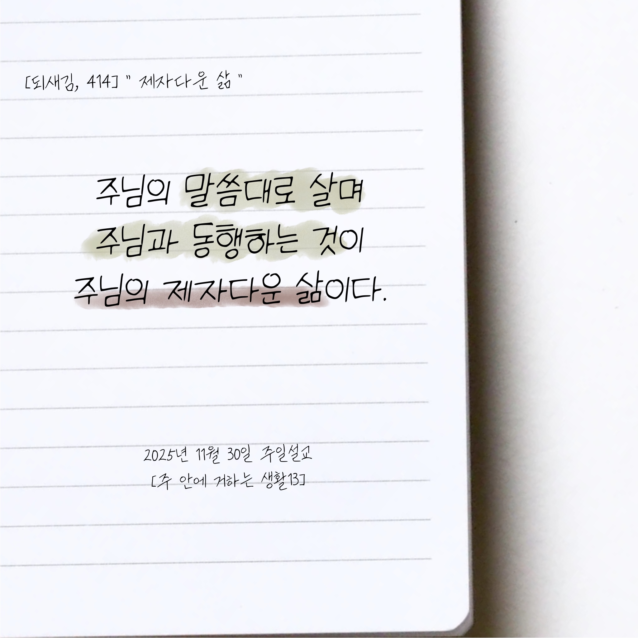 ‘아버지와 아들과 성령의 이름으로 세례를 주고 내가 너희에게 분부한 모든 것을 가르쳐 지키게 하라’ 주님이 말씀하신 걸 가르쳐서 지키게 하라. (마 28:20) ‘볼지어다 내가 세상 끝날까지 너희와 항상 함께 있으리라’ 그런 가운데 주님이 같이 계셔요. 구원받은 사람은 그리스도의 제자입니다. 그래서 주님의 이름으로 주님과 함께 죽고 주님과 함께 장사되고, 나는 죽고 주님이 내 안에 살아 계신다는 것을 침례로 나타내는 거예요. 침례 안 받았어도 그건 마음에 이루어진 거니까요. 그리고 ‘내가 너희에게 분부한 모든 것을 가르쳐 지키게 하라’ 주님이 말씀하신 걸 가르쳐서 지키게 하라. 그게 그리스도의 제자예요, 그것이. 아세요? 지키지도 않는데 무슨 그리스도의 제자예요.