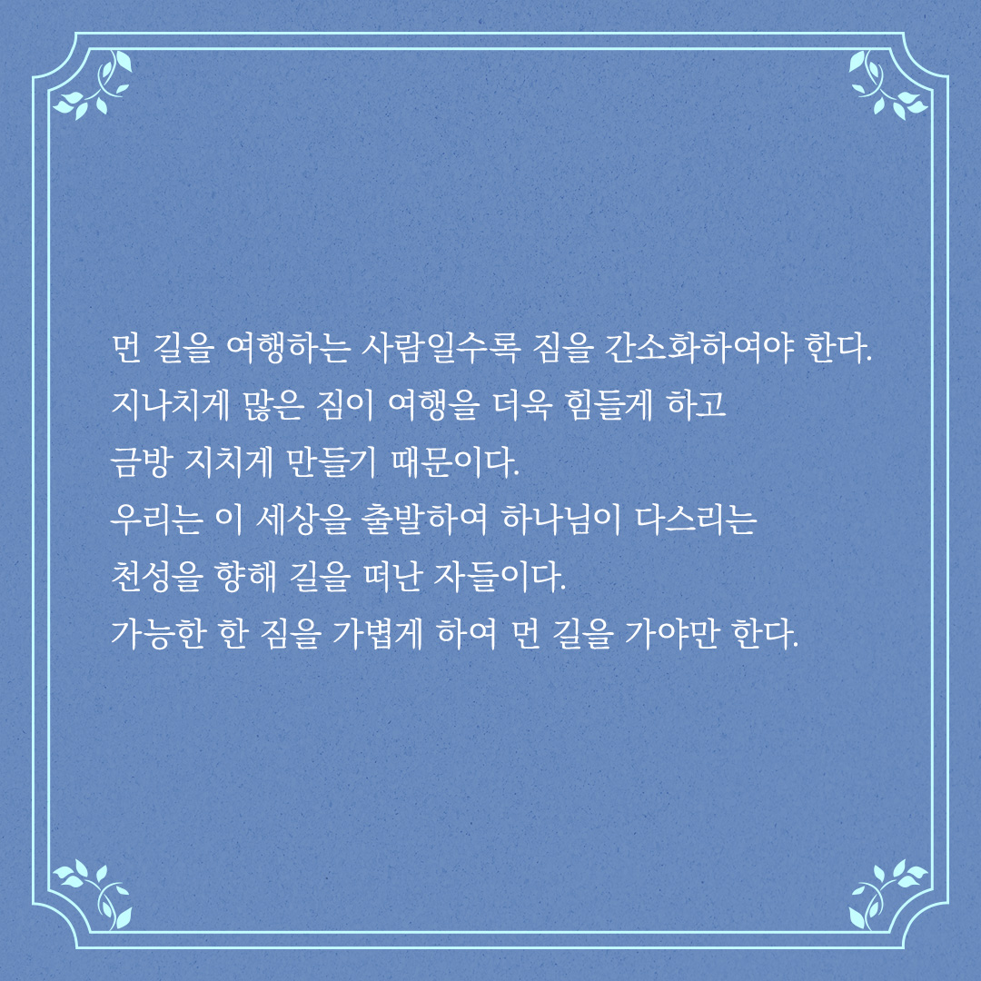 가능한 한 짐을 가볍게 하여 먼 길을 가야만 한다.