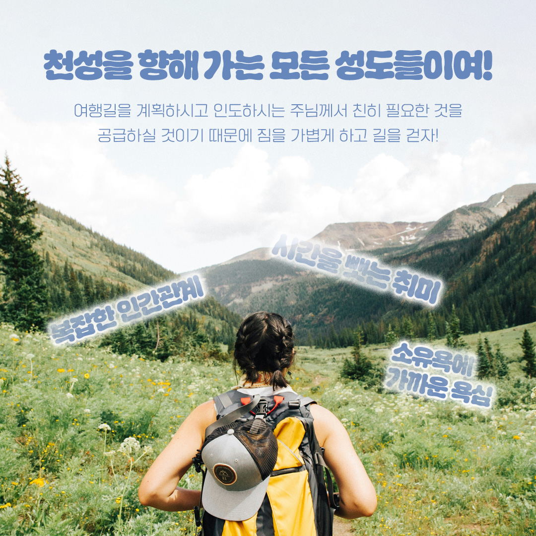 여행길을 계획하시고 인도하시는 주님께서 친히 필요한 것을 공급하실 것이기 때문이다.