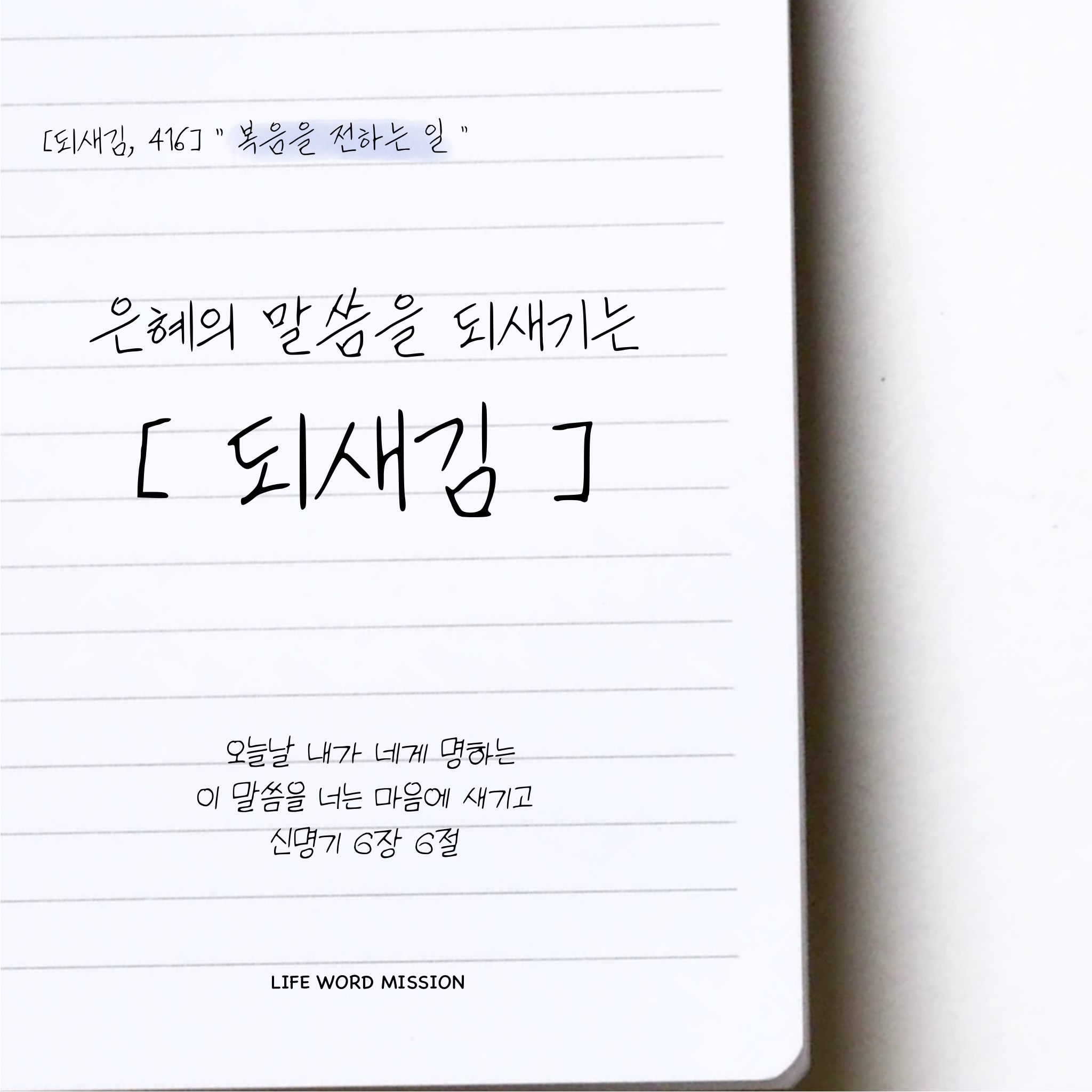 우리들이 성경대로 사는 삶의 가장 첫 번째가 복음 전하는 일이거든요. 그런데 예수님께서 부활하신 후 제자들을 보시면서 손의 못 자국과 허리의 창 자국을 보이시면서 제일 먼저 하신 말씀이 뭐예요? (요 20:21) ‘너희에게 평강이 있을지어다’ 그리고 그다음에 하신 말씀이 뭐예요? ‘아버지께서 나를 보내신 것같이 나도 너희를 보내노라’ 왜 주님이 우리를 세상에 보내십니까? 주님의 일을 하라고. 주님이 대속하시는 일을 했기 때문에 그 대속하시는 일을 전하라고 우리를 세상에 보내신 거잖아요. 그럼 우리도 세상에서 성경대로 사는 삶의 중심이 무엇이냐, 그것이 복음 전하는 일입니다. 그리스도인의 삶의 중심이 복음 전하는 일입니다.