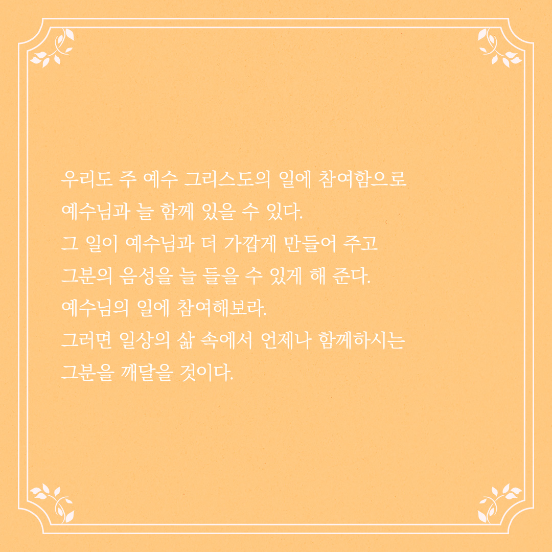 우리도 주 예수 그리스도의 일에 참여함으로 예수님과 늘 함께 있을 수 있다.
