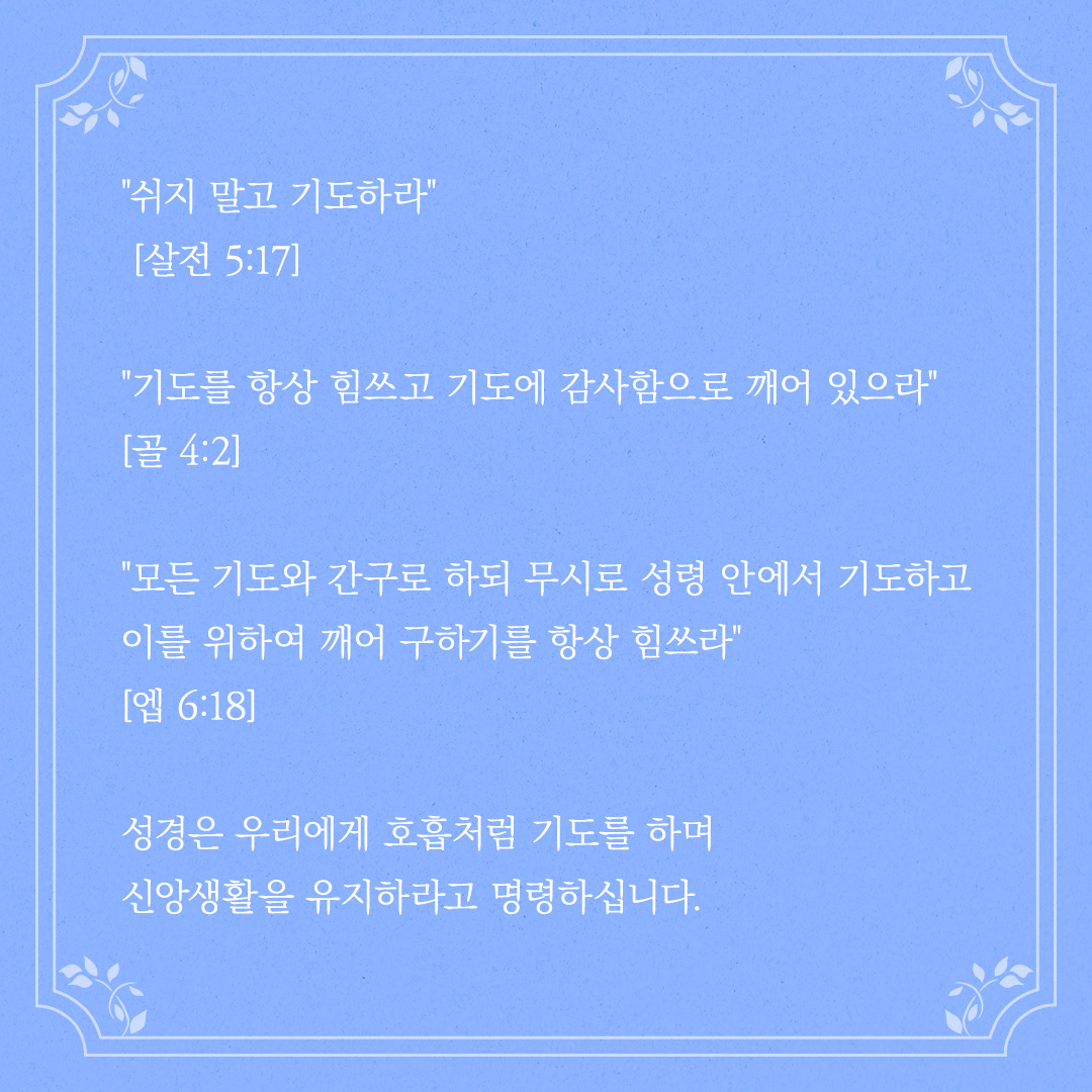 성경은 우리에게 호흡처럼 기도를 하며 신앙생활을 유지하라고 명령하십니다.