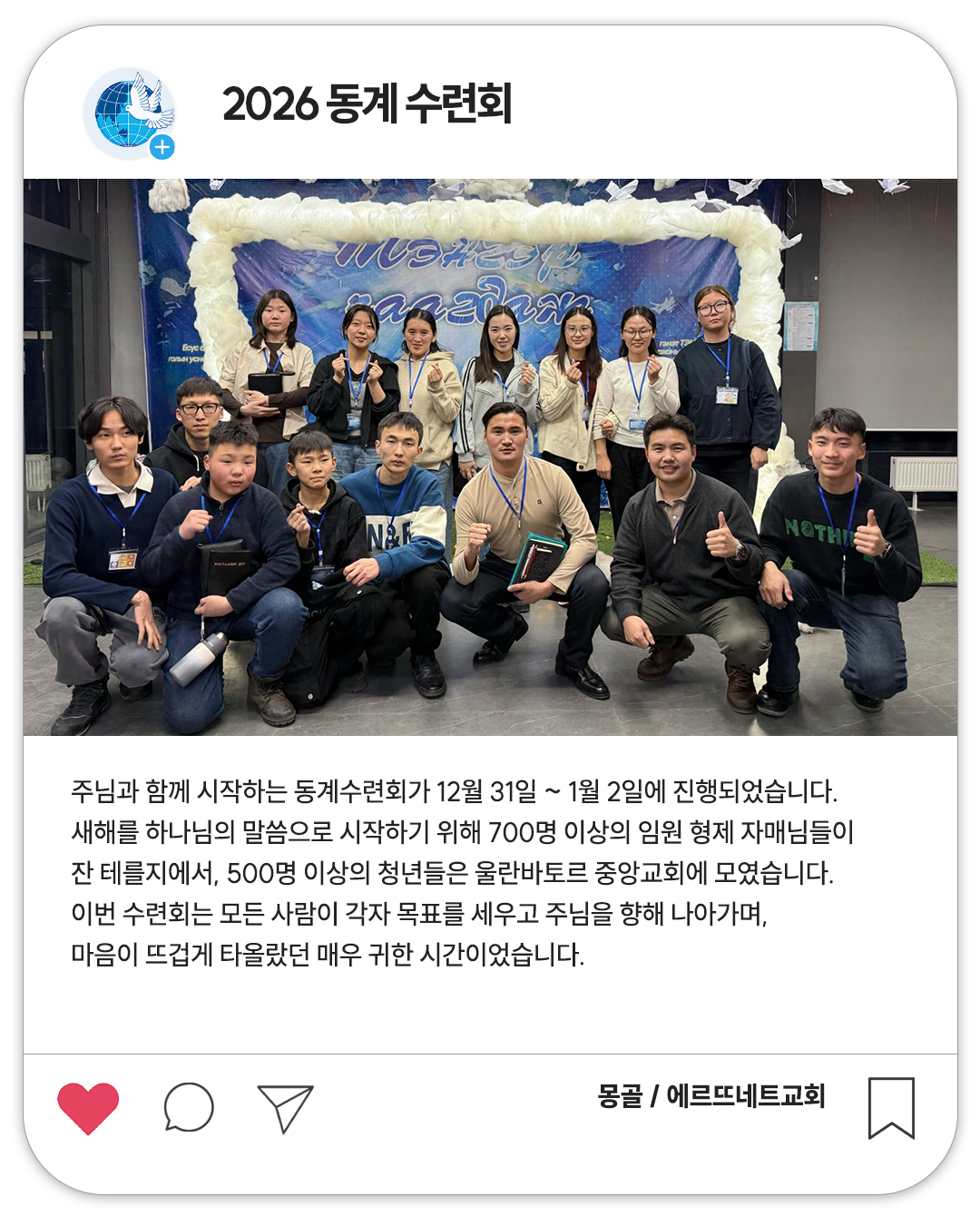 몽골선교 교제실BAND에서 >>>