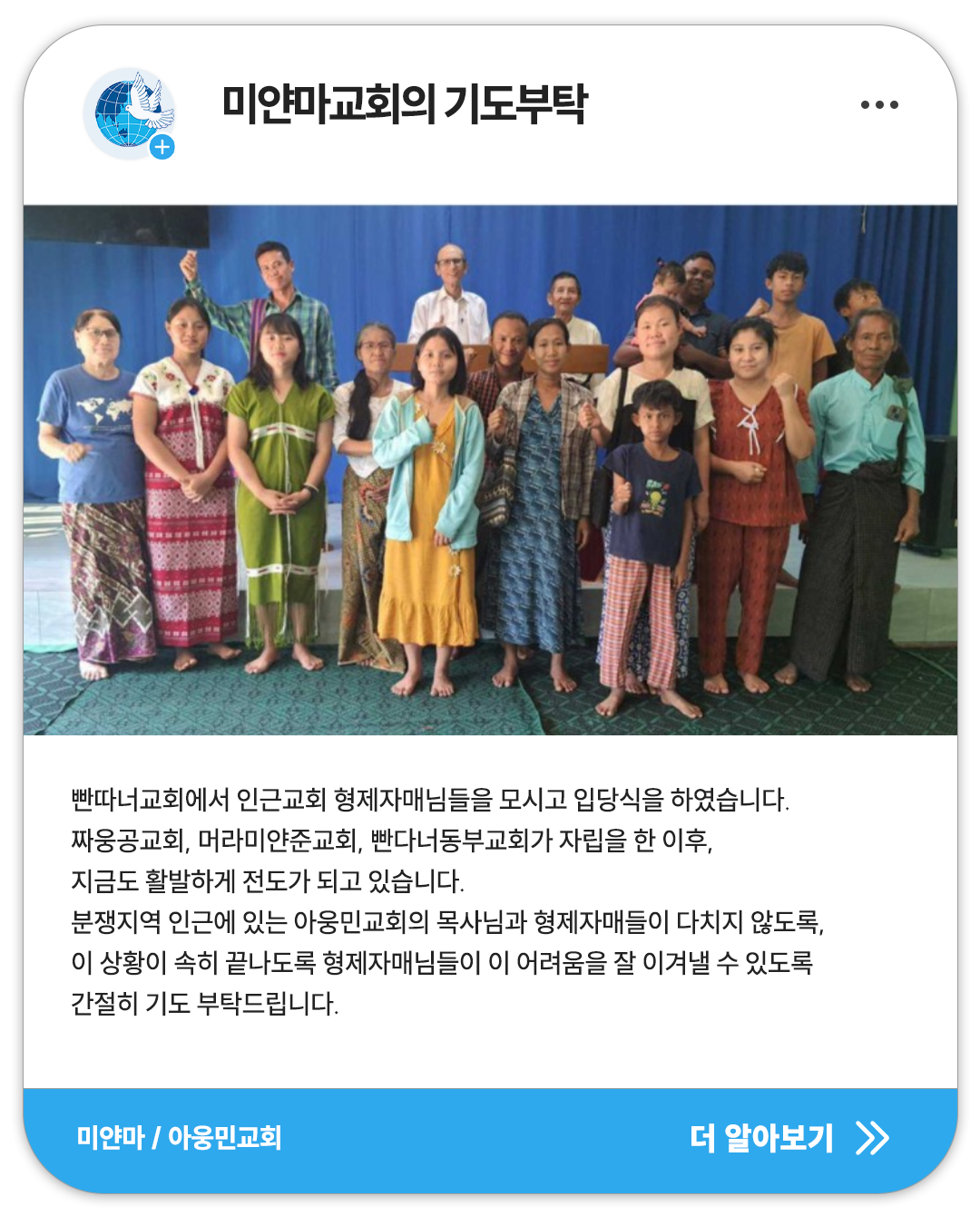 분쟁지역 인근에 있는 아웅민 교회의 목사님과 형제자매들이 다치지 않도록,