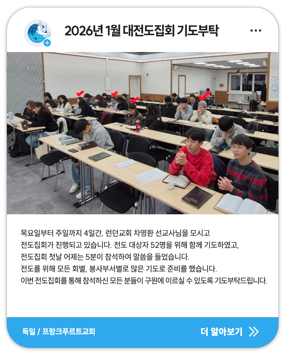 2026년 2월 2일 사무엘학교/ 발렌시아교회/ 상파울로교회/ 아웅민교회/ 프랑크푸르트교회