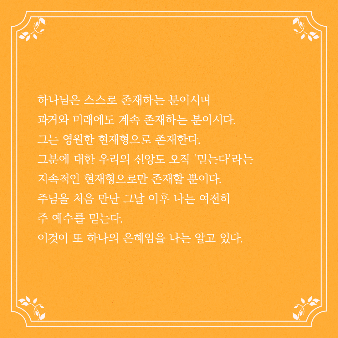 그분에 대한 우리의 신앙도 오직 '믿는다'라는 지속적인 현재형으로만 존재할 뿐이다.
