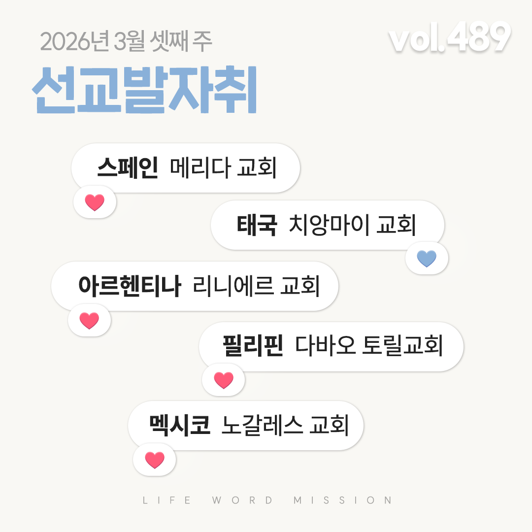 2026년 3월 17일 메리다교회/ 치앙마이교회/ 리니에르교회/ 다바오 토릴교회/ 노갈레스교회