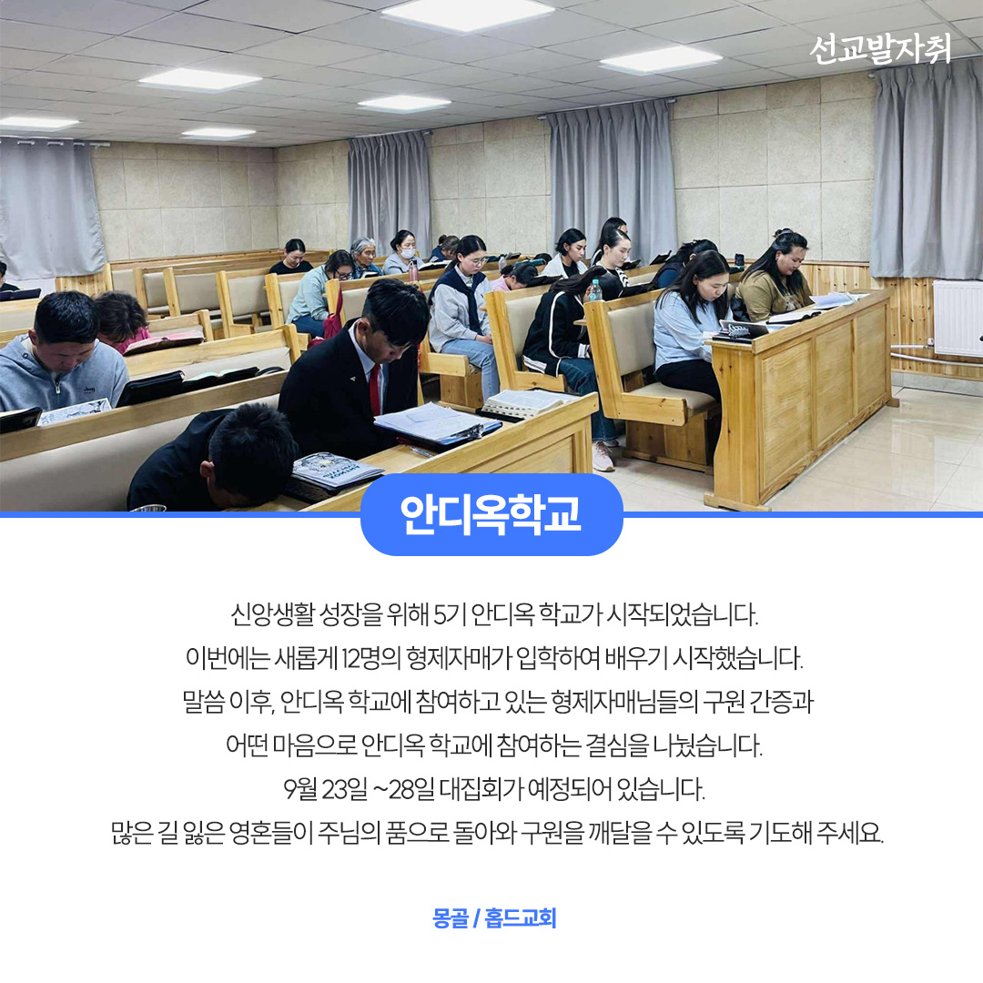 참석하시는 모든 형제자매님들의 성경지식과 신앙성장을 위해 계속 기도부탁 드립니다