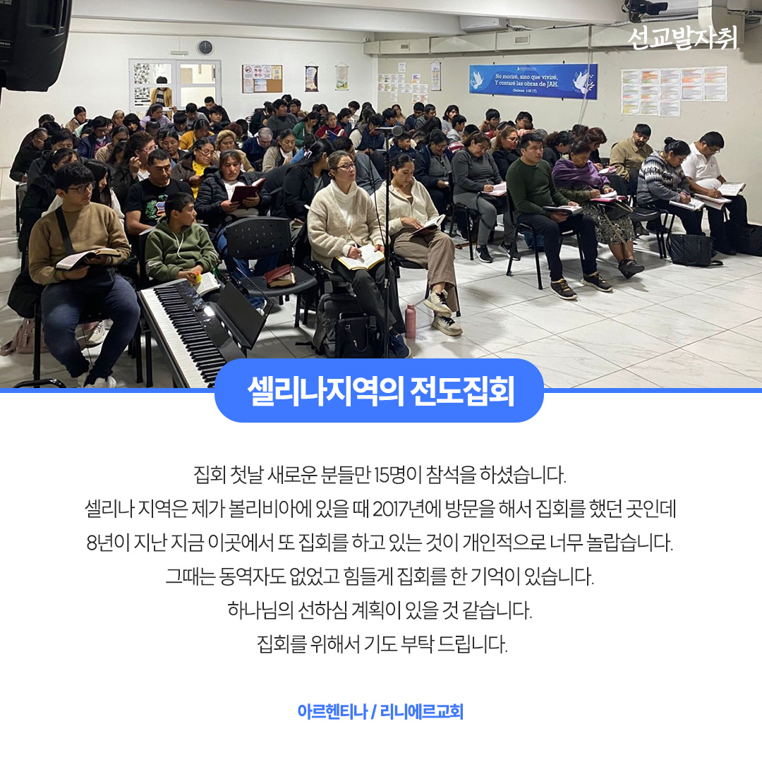 셀리나 지역은 제가 볼리비아에 있을 때 2017년에 방문을 해서 집회를 했던 곳인데
