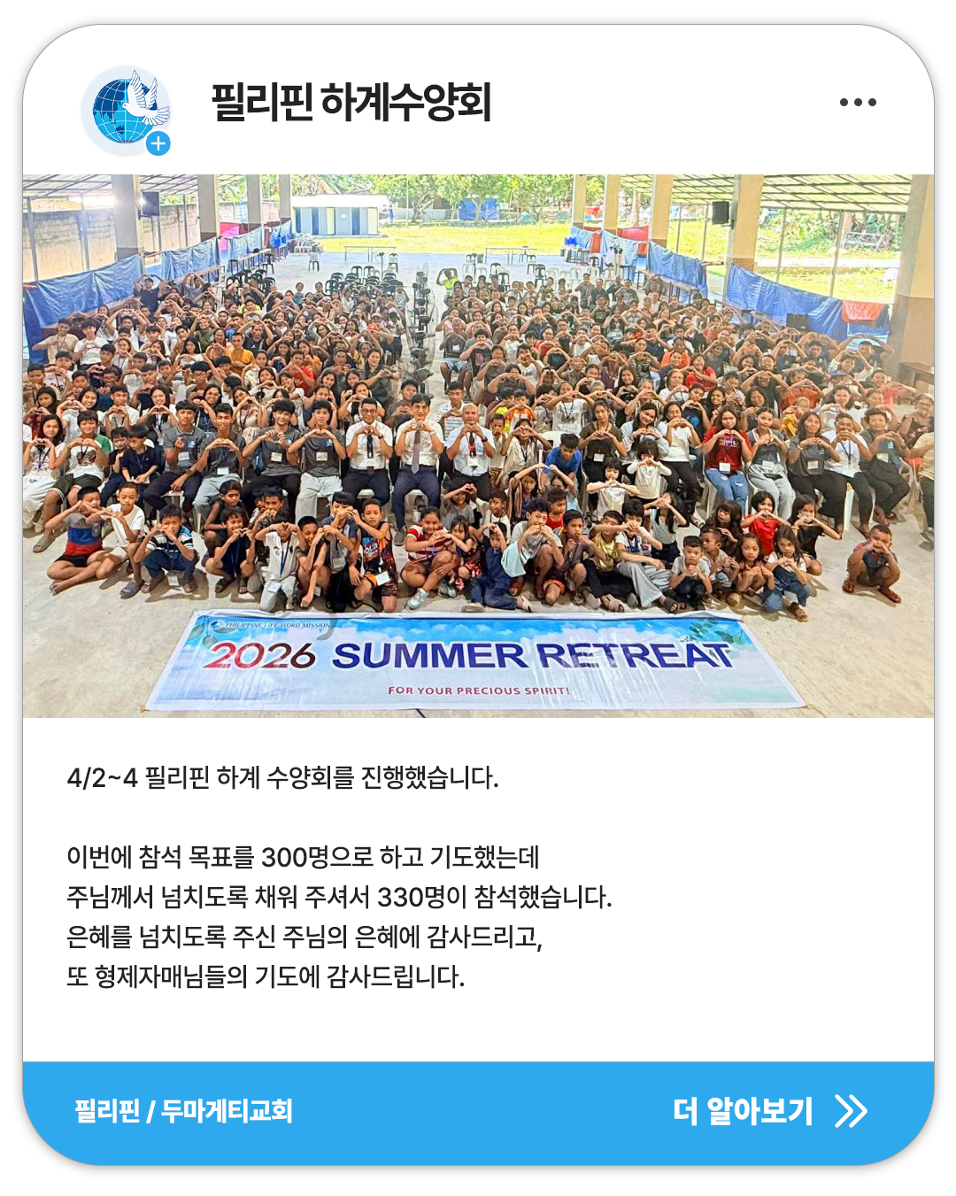 4/2~4 필리핀 하계 수양회를 진행했습니다.