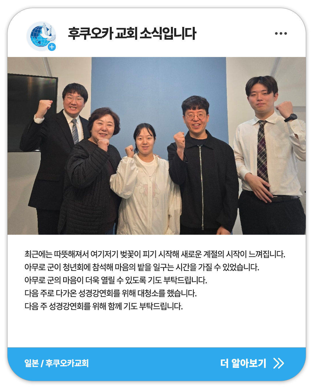 아무로 군의 마음이 더욱 열릴 수 있도록 기도 부탁드립니다.