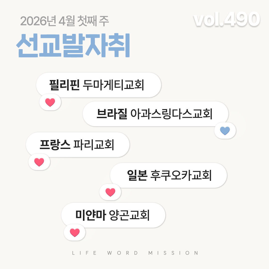 2026년 4월 6일 두마게티교회/ 아과스링다스교회 / 파리교회/ 밀라노교회/ 양곤교회