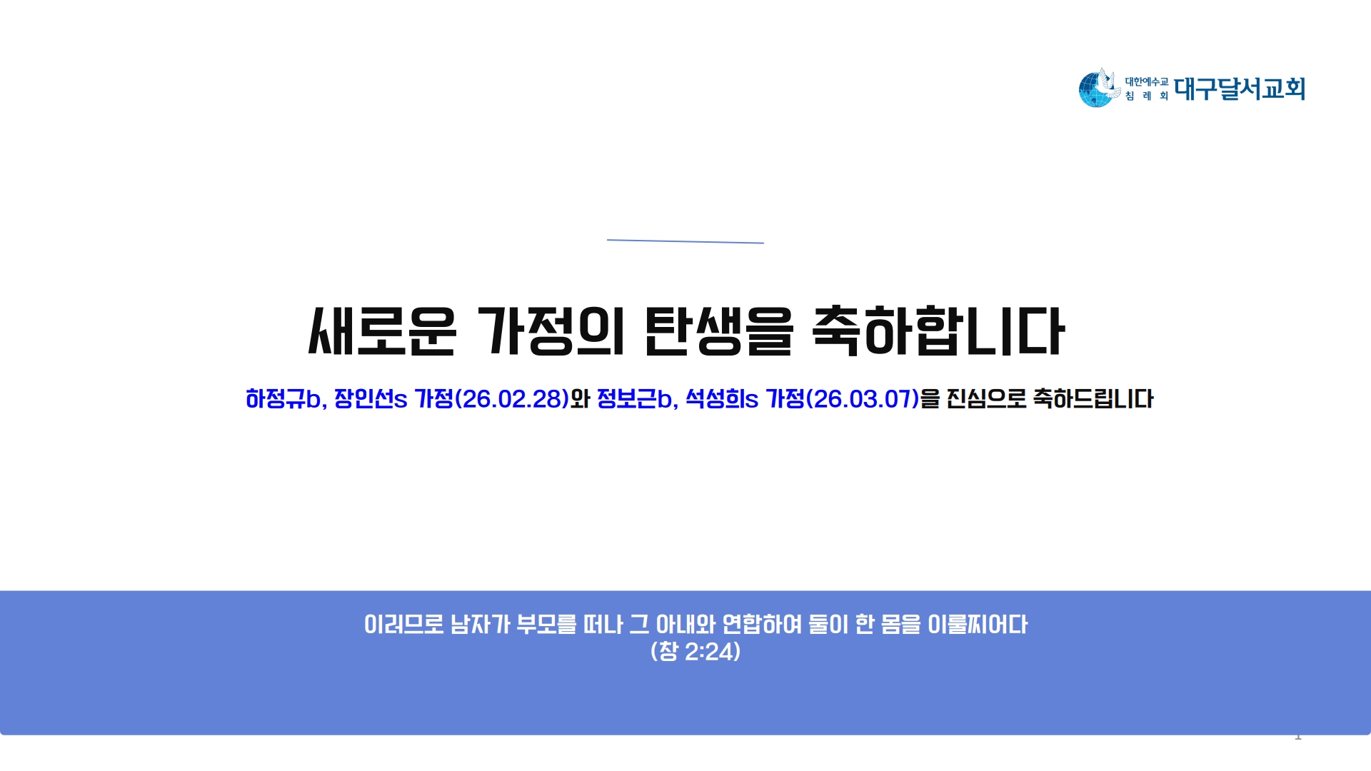 26년 달서교회에서 귀한 두 가정이 탄생했습니다.